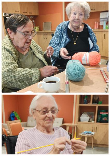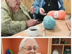 À la suite de cet atelier, cinq dames ont souhaité poursuivre ce moment de convivialité autour du tricot. Nous avons donc lancé des fins d’après-midi “tricot” pour tous les résidents qui le souhaitent 😊