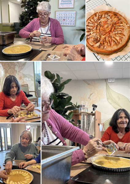 À l’occasion de l’anniversaire d’une résidente, nous avons également préparé ensemble une savoureuse tarte aux pommes. Un atelier culinaire très apprécié, où chacun a mis la main à la pâte avec enthousiasme.