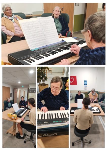 Parmi eux, un atelier musical animé par Héloïse, qui vient avec ses instruments et son piano pour faire chanter les résidents, leur faire deviner des mélodies et partager de jolis moments musicaux. Cet atelier sera prochainement proposé chaque jeudi après-midi à 14h30.