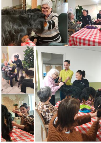 Ce fut un véritable moment de partage, de curiosité et de bonheur grâce à la présence de ses trois petits chiens et de l'éducatrice canin.