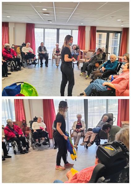 Fantine accompagne les résidents tous les jeudis à partir de 14h30, en salle d’animation au deuxième étage, pour ces temps d’APA pensés pour faire du bien au corps… et au moral.