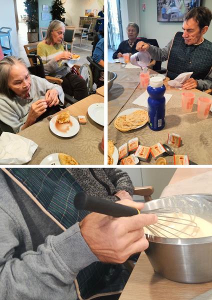 Au programme : crêpe party pour le goûter et soupe maison à la tomate et aux champignons pour le dîner , préparées avec enthousiasme par tous les résidents.