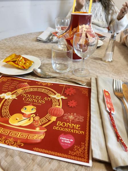 Les tables ont été soigneusement décorées pour l'occasion par les résidents. Chaque participant a reçu un petit biscuit de fortune, accompagné d'un message, ainsi que la traduction de leur prénom en chinois.