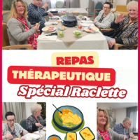Publiée le 05/12/2025Nous avons mis en place des repas « raclette thérapeutique » chaque jeudi midi, organisés par petits groupes de 4 résidents, réunis selon leurs affinités. Un moment chaleureux et convivial, pensé pour favoriser le plaisir, le partage et le bien-être. Lire la suite