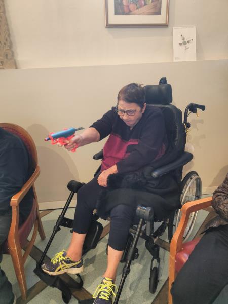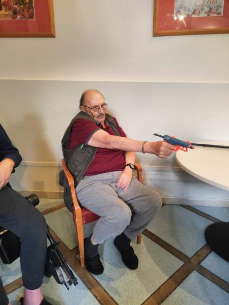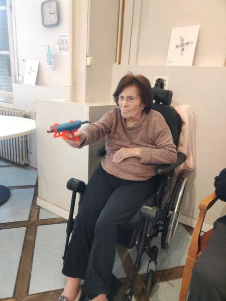 Lors de l'animation dédiée à la remise en forme, les résidents du Château de la Malle ont eu l'occasion de vivre une expérience inhabituelle en découvrant, pour certains, les pistolets nerfs.