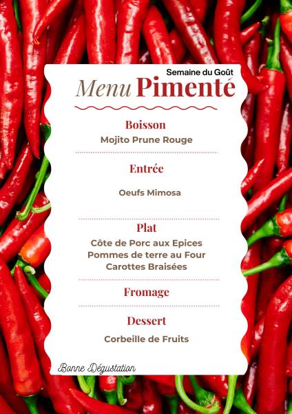 Chaque jour, la cuisine préparera un plat mettant à l’honneur une saveur différente (épicée, sucrée, salée, etc.). Pour éveiller les papilles des résidents, je proposerai un mojito revisité, différent chaque jour, au début du repas de midi.